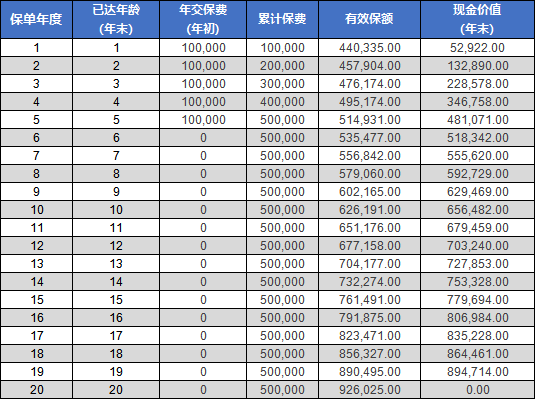 保單的現(xiàn)金價值甚至超越了當年年度(有效)保額。