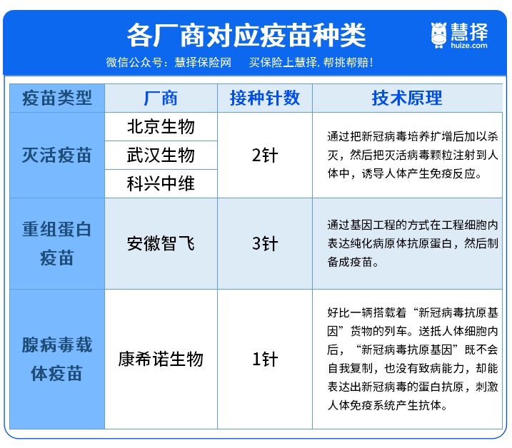 目前能預(yù)約的疫苗廠商有5個(gè),分為3種類(lèi)型。