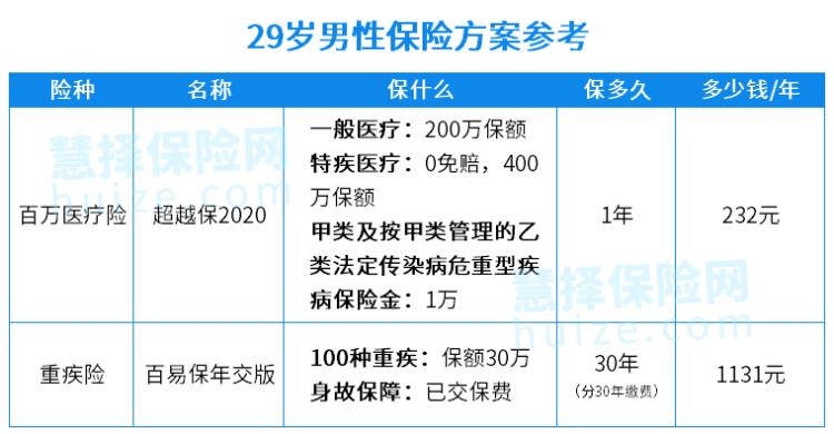 29歲男性,每年1000多元,就可以配上百萬(wàn)醫(yī)療險(xiǎn)+定期重疾險(xiǎn)。