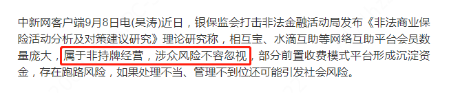 銀保監(jiān)會(huì)對(duì)互助計(jì)劃的定義是:非持牌經(jīng)營(yíng)。