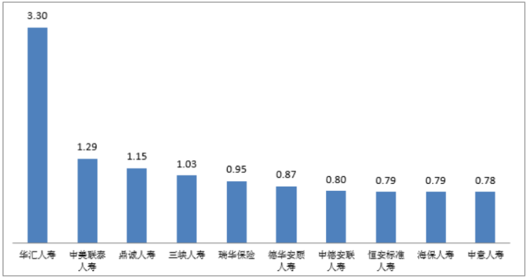 投訴量多的公司,有可能是因?yàn)樗挠脩袅看?,所以我們一般看另一個(gè)數(shù)據(jù):萬張保單投訴量。