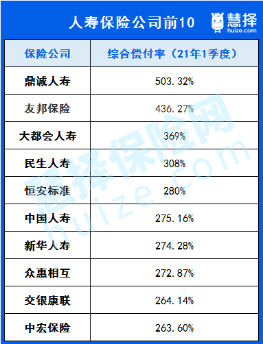 2021年1季度綜合償付能力充足率前10名是這幾位: