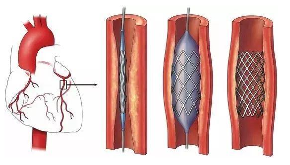 心臟支架手術(shù),球囊導(dǎo)管通過血管置入狹窄的血管,在體外將球囊加壓膨脹,撐開狹窄的血管壁,使病變血管恢復(fù)暢通。