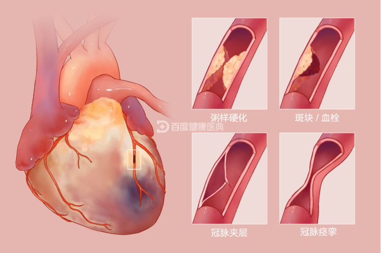 簡(jiǎn)而言之:給心臟供血的“管道”-冠狀動(dòng)脈堵住了,心肌細(xì)胞缺血缺氧,導(dǎo)致壞死。