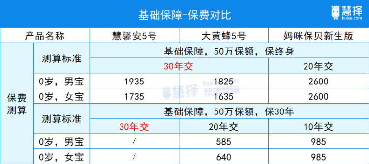 如果覺得繳費(fèi)時間太短有繳費(fèi)壓力的,就選能分20年、30年交的慧馨安5號、大黃蜂5號。