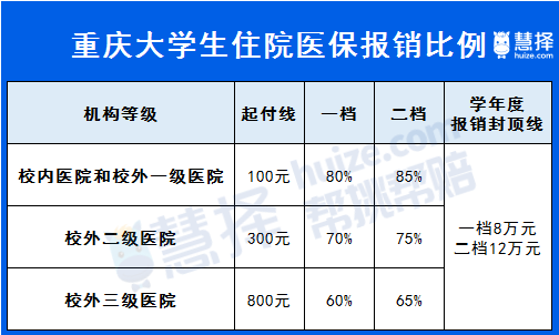 不過這里面,大學生可以選擇參加普通的居民醫(yī)保或者大學生醫(yī)保。如果參加的是大學生醫(yī)保,住院醫(yī)保報銷比例略有不同,具體可以看這個表↓