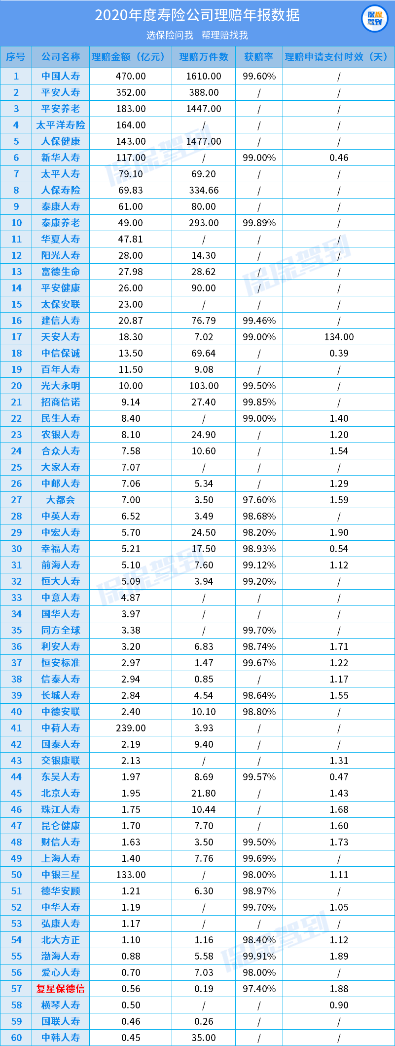下面列了部分保司的獲賠率和理賠支付時效。