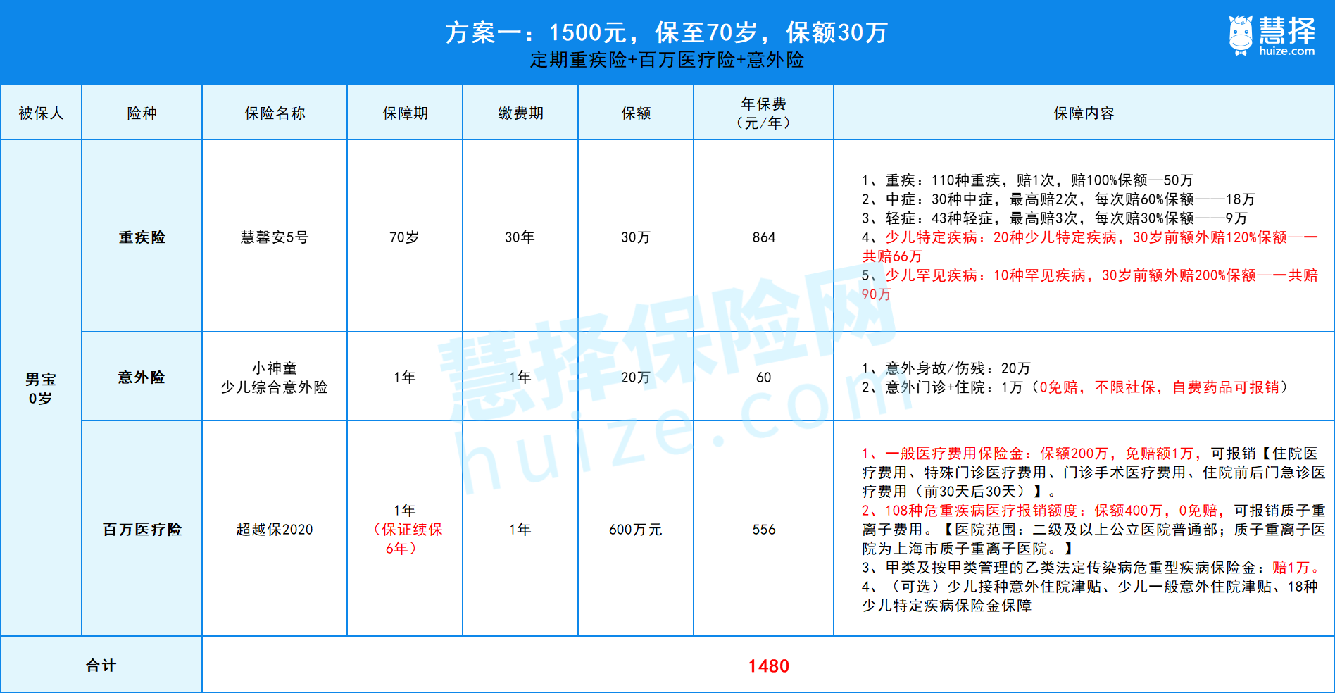 2、1000元高性價比方案參考:千元搞定百萬保額!