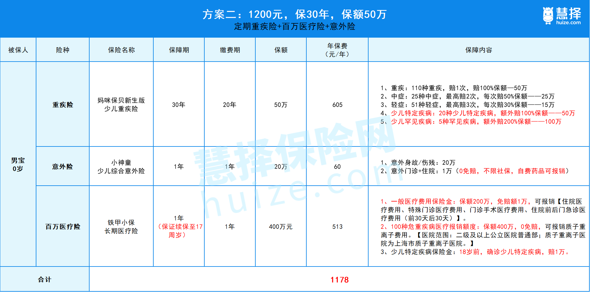 包括:少兒醫(yī)保+醫(yī)療險+意外險+重疾險。