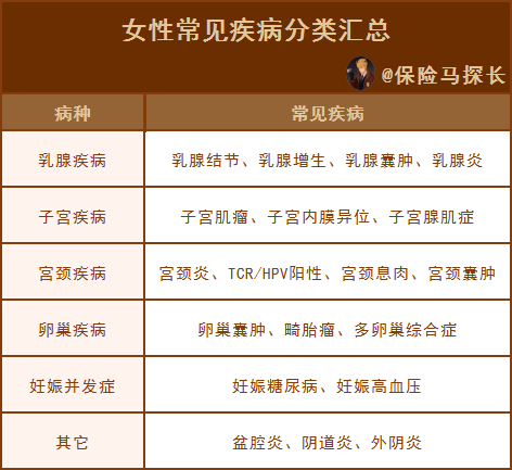 從最新的理賠報告來看,像乳腺癌、子宮癌、宮頸癌、甲狀腺癌這幾種,都是女性的高發(fā)疾病。如果預算夠的話,能買上可以附加女性特疾額外賠付,或者本身是多次賠付的重疾險產品就更好啦。