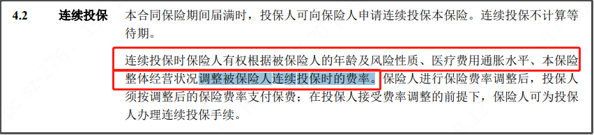 但都給自己留了條后路,保留了“續(xù)保時保險人有權(quán)根據(jù)被保險人的年齡、醫(yī)療費用水平變化等調(diào)整被保險人在續(xù)保時的費率。”