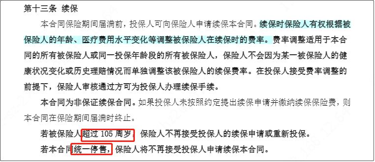 超過續(xù)保年齡,比如105周歲
