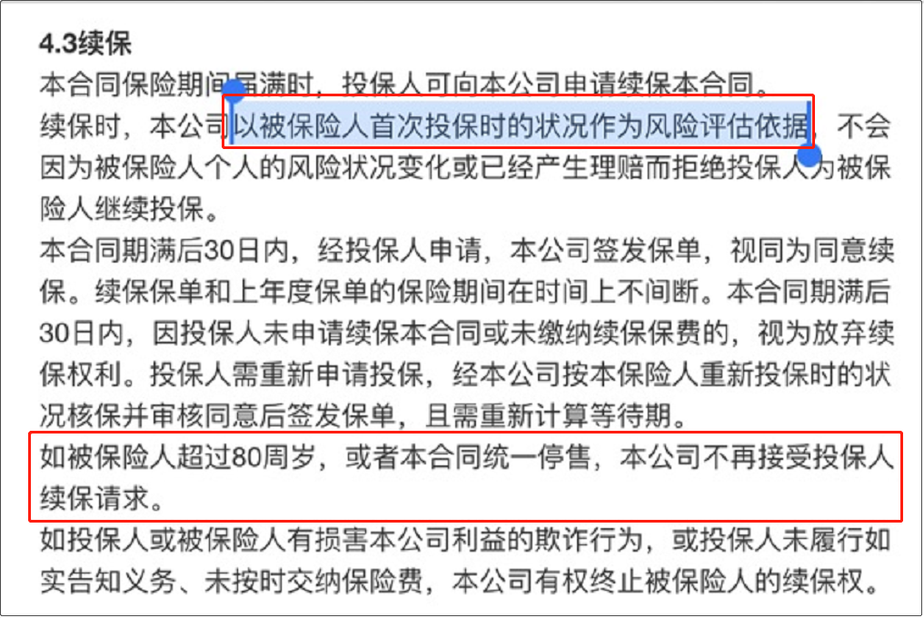 基本上都寫著“不因被保人健康狀況變化或歷史理賠記錄而拒絕續(xù)保?!?/span>