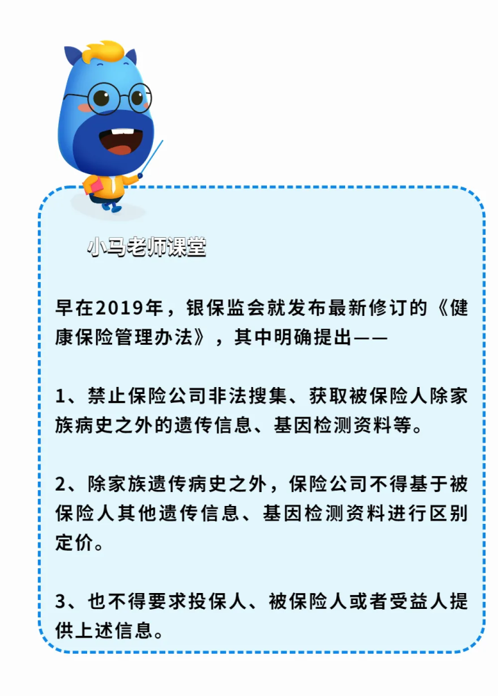 銀保監(jiān)會爸爸早在2019年就發(fā)布過條例,保司不能要求投保人提供基因檢測資料。