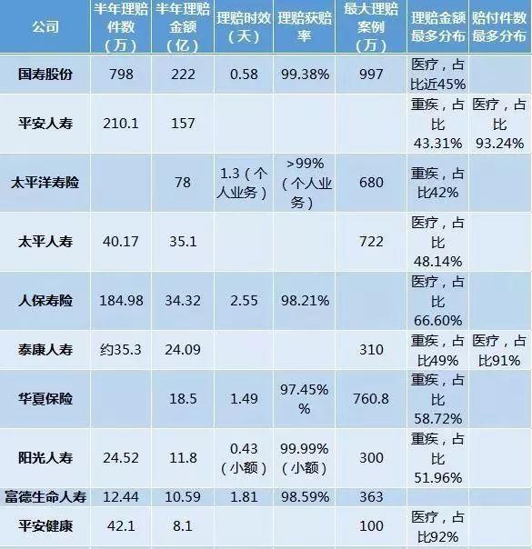 來看看中國銀行保險報整理的2019上半年理賠數(shù)據(jù):