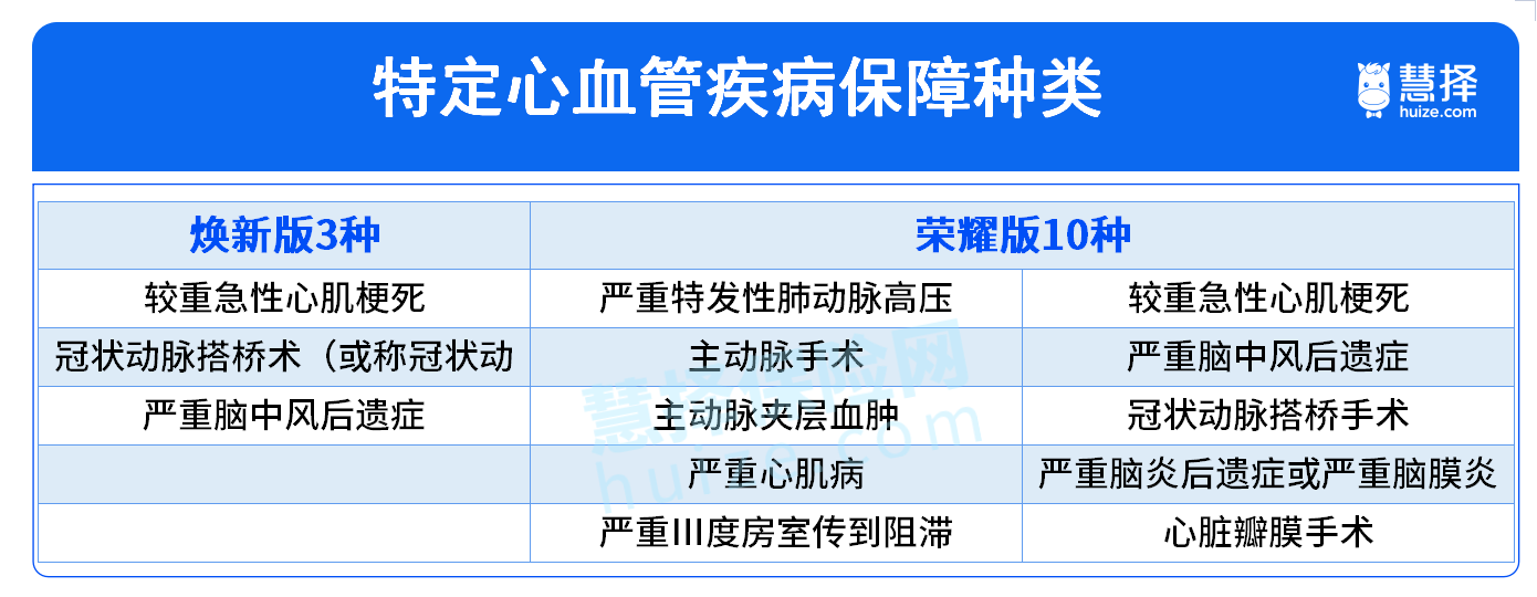 病種:榮耀版更多,能保10種(煥新版是3種)
