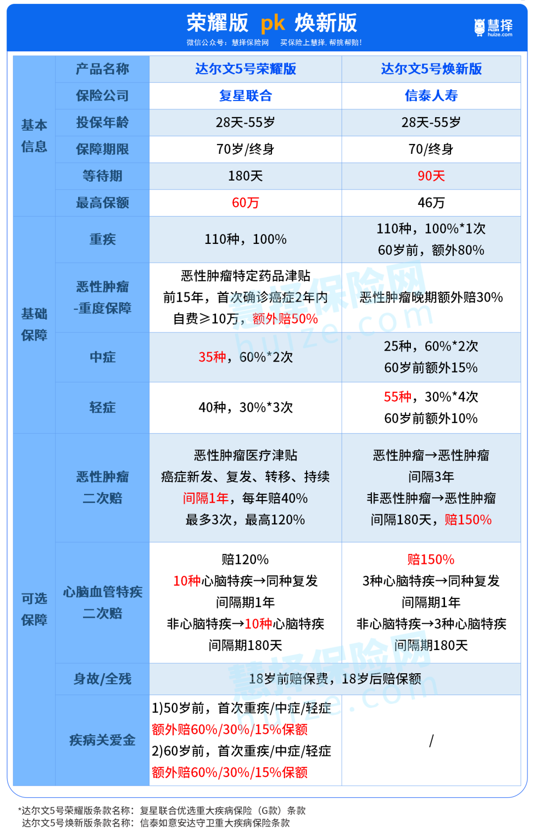 這次達(dá)爾文回歸帶來了2款重疾險:達(dá)爾文5號煥新版、達(dá)爾文5號榮耀版