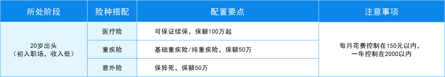 所以,這個(gè)階段的年輕人買(mǎi)保險(xiǎn),中心思想就是:花少錢(qián),買(mǎi)保障,防大病。
