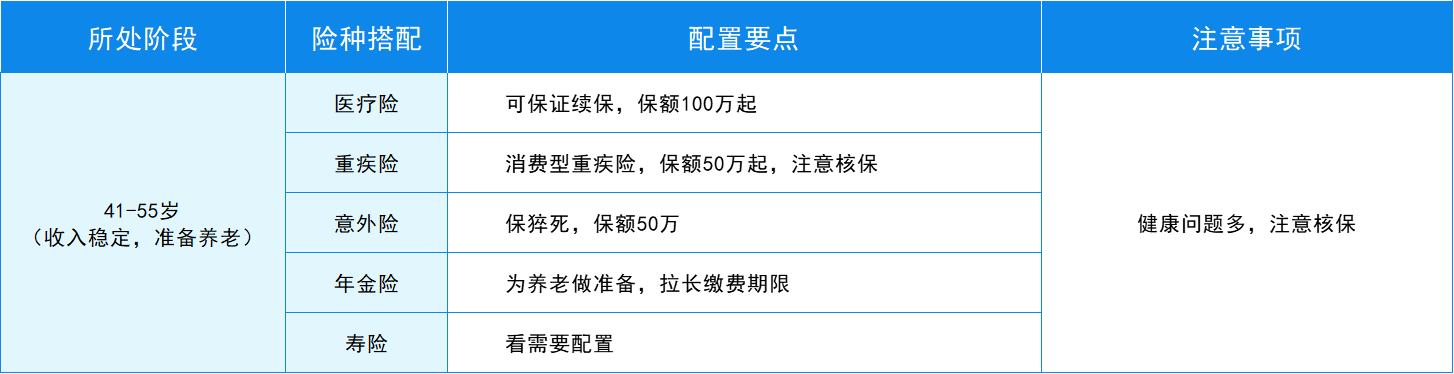 41歲-55歲:收入穩(wěn)定,準(zhǔn)備養(yǎng)老