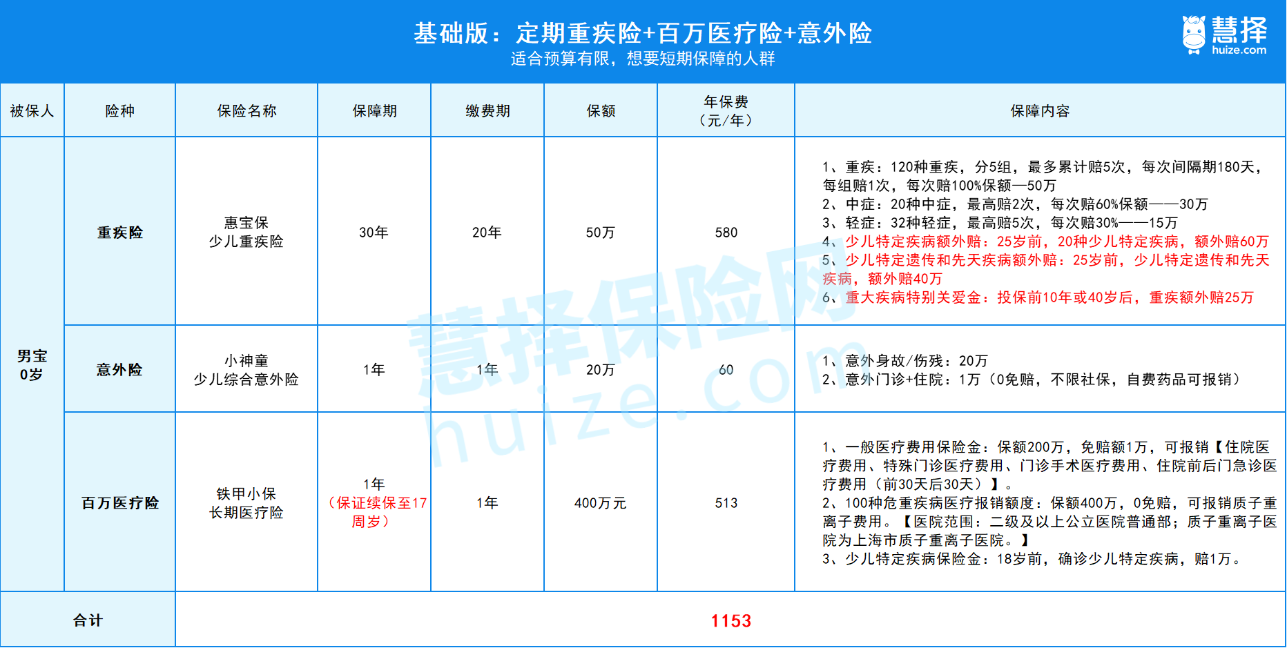 ①惠寶保重疾險:價格便宜;重疾分組最高賠5次;25種少兒特定疾病額外賠120%保額