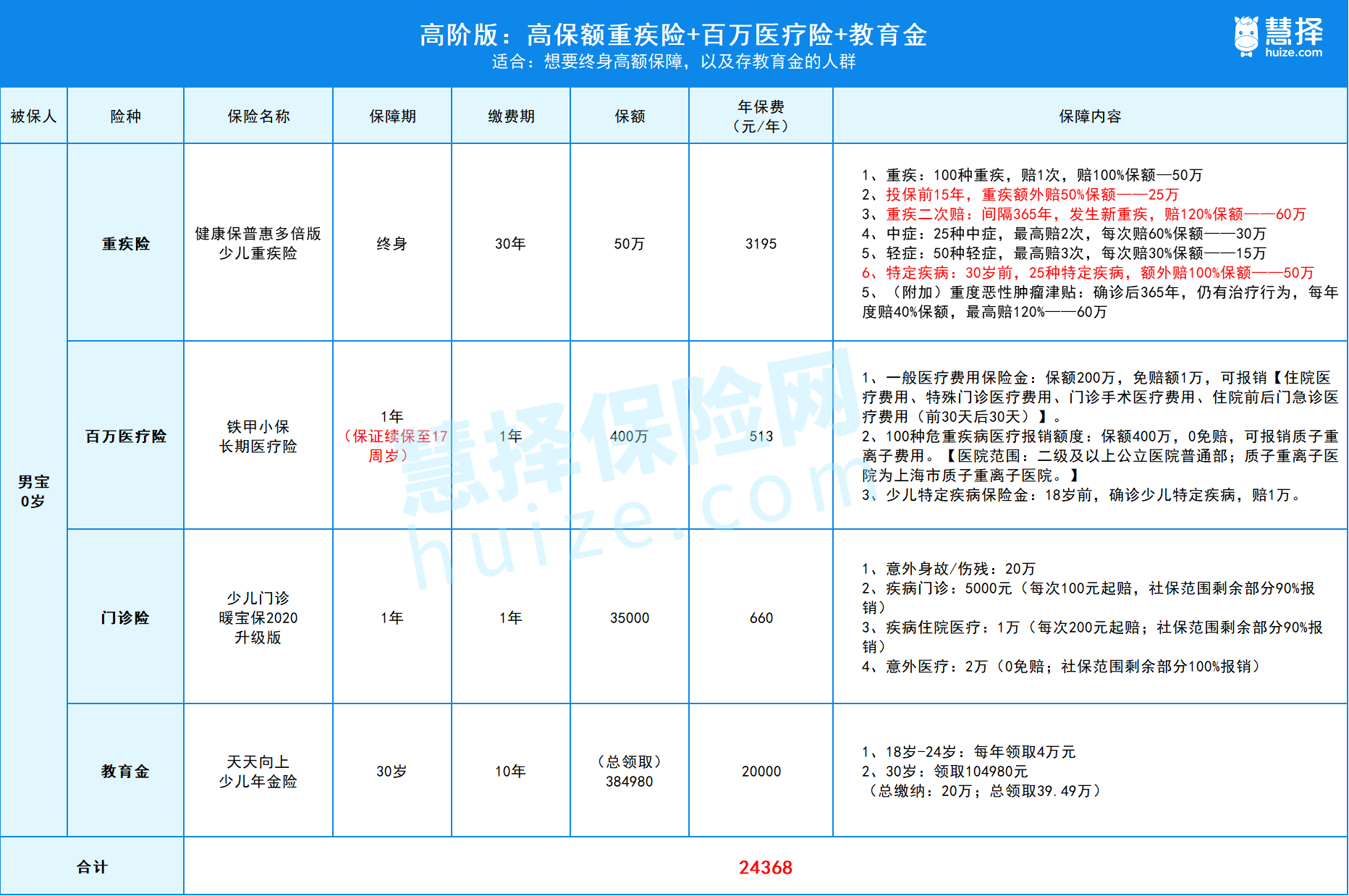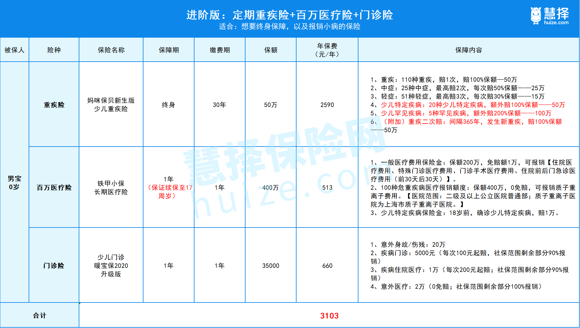 如果預算夠,可以把寶寶的重疾險保額提高,
