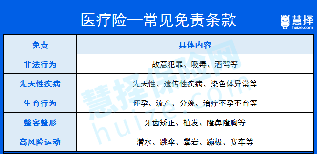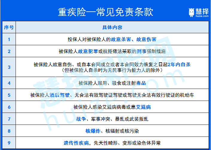 以重疾險和醫(yī)療險為例,大擇給大家列一下常見的免責(zé)條款: