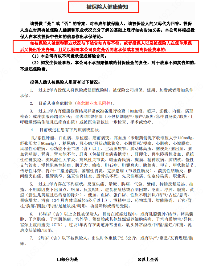 這就相當(dāng)于保險(xiǎn)公司在承保前給的“健康問(wèn)卷”,部分不符合,還可以走智能核保或者人工核保,沒(méi)必要隱瞞,買(mǎi)一份無(wú)效的保險(xiǎn)。