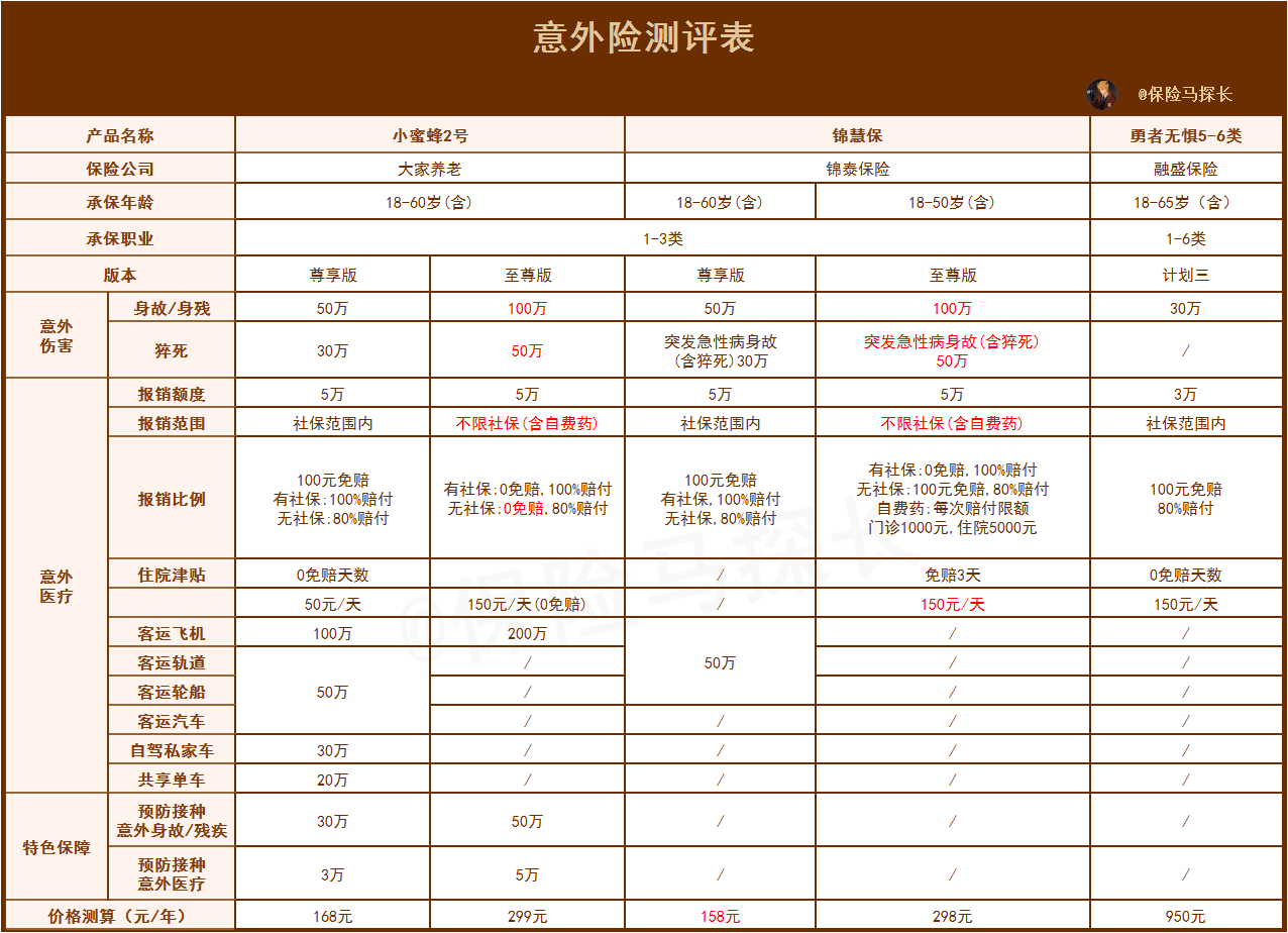 ● 看增值保障:這點(diǎn)屬于加分項(xiàng),比如有的產(chǎn)品能保猝死,交通意外能多賠保額(比如小蜜蜂2號(hào)尊享版,公共交通意外額外賠50萬(wàn)),甚至意外醫(yī)療能保自費(fèi)藥,越多越好。