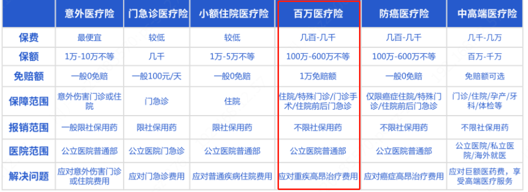 6種常見(jiàn)的商業(yè)醫(yī)療險(xiǎn),你可以這樣區(qū)分: