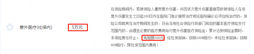 還要注意意外醫(yī)療的免賠額,大部分產(chǎn)品的免賠額多是100-200元,首選100元免賠額、以及有住院津貼的產(chǎn)品。