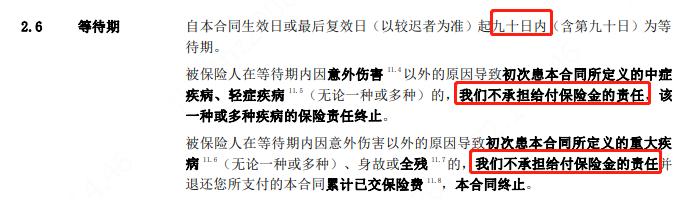 除此之外,保險(xiǎn)公司考慮到騙保的情況,長(zhǎng)期險(xiǎn)都有設(shè)置一個(gè)“等待期”。