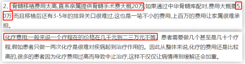 以兒童殺手——白血病為例,根據(jù)衛(wèi)生部的統(tǒng)計(jì)顯示:若是骨髓移植的話費(fèi)用在50W往上,以最低限度的4~6個(gè)化療流程費(fèi)用也接近40W了。