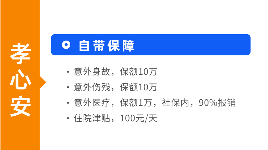 ● 價格劃算——60元,有意外身故/傷殘保障,意外醫(yī)療保障、特定交通意外身故/傷殘保障。