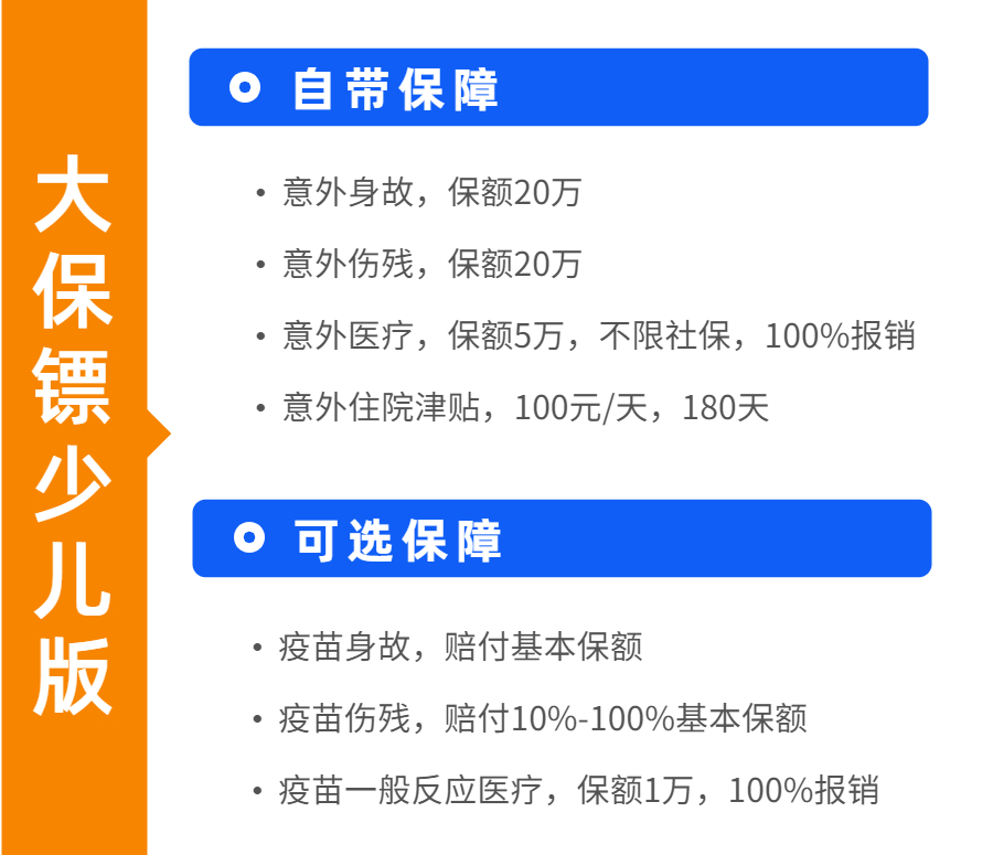 特色保障 特定交通意外保障,除了飛機、公共交通、自駕車意外,還有共享單車20萬保額;疫苗接種保障,包括疫苗接種身故/傷殘30萬、意外醫(yī)療3萬;