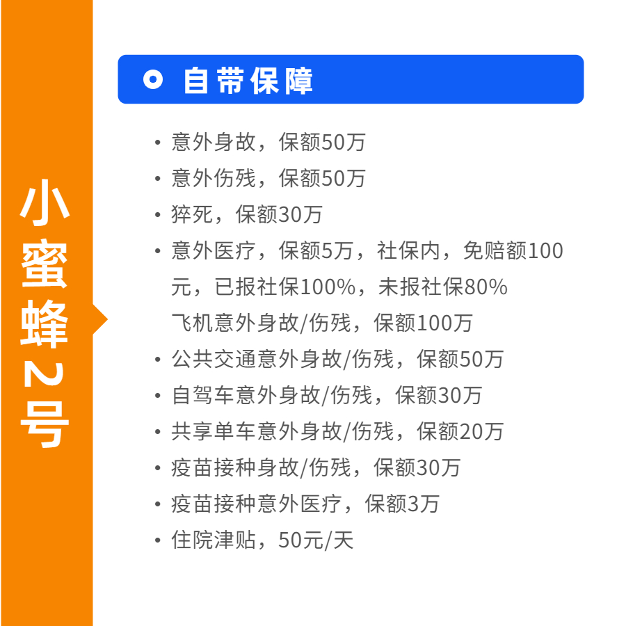 保障可升級 如果選擇至尊版小蜜蜂2號的意外醫(yī)療,不限社保內(nèi)外,用藥范圍更廣。