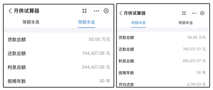 現(xiàn)在的月供計(jì)算器也比較方便,把金額和按揭年數(shù)一填,就能計(jì)算出來兩種方式的差別啦。