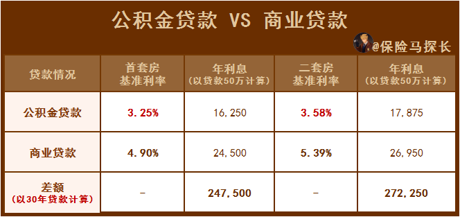 商業(yè)貸款的利率一般都是4.9%+,而公積金貸款首套房的基準(zhǔn)利率是3.25%,立省1.65%
