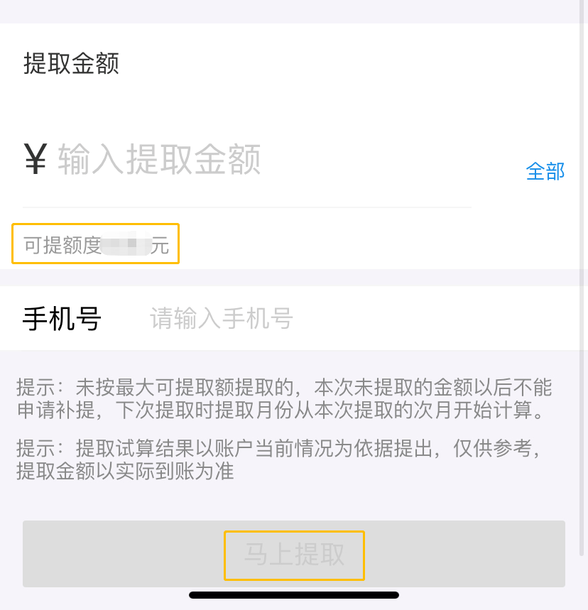 自行填寫提取金額,下面有一個(gè)參考的可提取額度哦。
