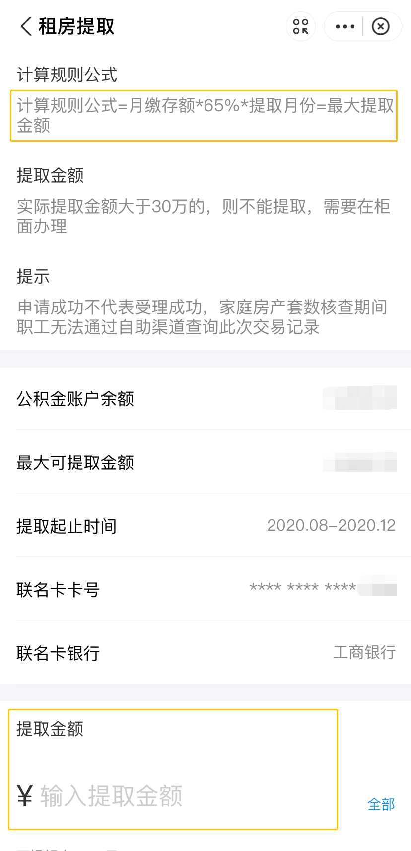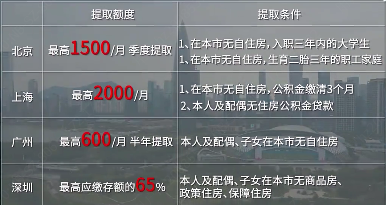 租房提取:月繳存額的65%X可提取月份。其他住房消費(fèi)提取比例是40%。