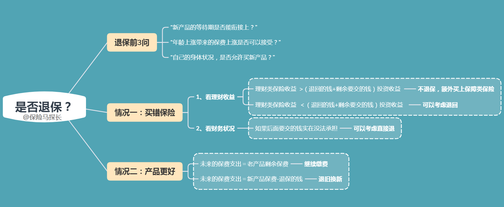 如果都沒問(wèn)題呢,分情況來(lái)處理。第一種情況是,買錯(cuò)了保險(xiǎn)。第二種情況是看到了更好的產(chǎn)品。不同的情況,對(duì)應(yīng)要考慮的因素也不一樣。