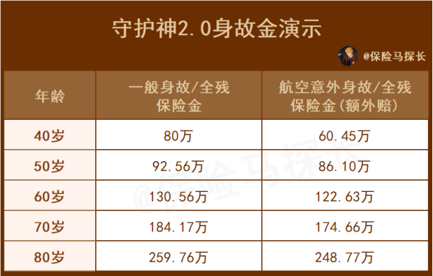 如果航空意外導(dǎo)致身故或全殘,將獲得接近2倍一般身故保險金。