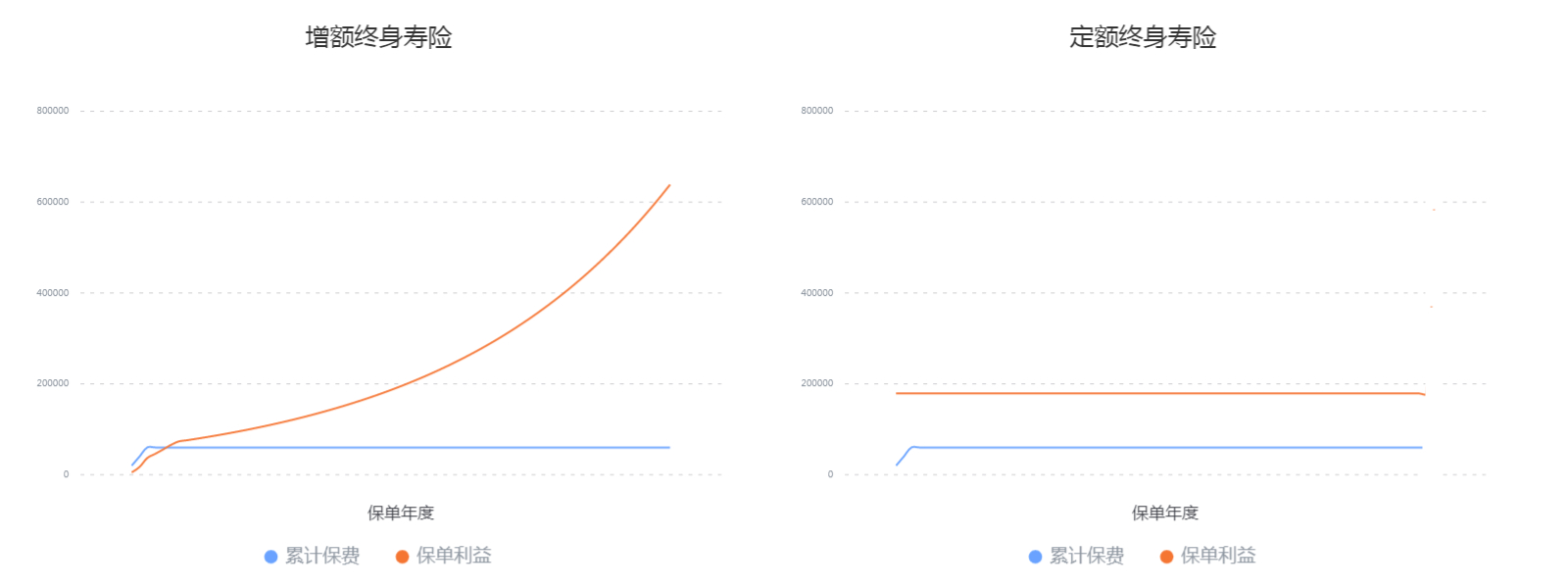 增額終身壽險雖然屬于壽險大類,但和傳統(tǒng)的終身壽險相比,它前期的保障成分較低,主要是為后期增值蓄力。