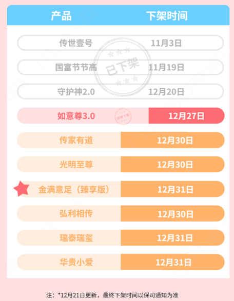 重要提醒:受互聯(lián)網(wǎng)保險新規(guī)調(diào)整,部分產(chǎn)品臨近下架,注意預(yù)留考慮的時間哦。