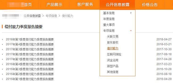 查看保險(xiǎn)公司的償付能力季度報(bào)告,可以登錄保險(xiǎn)公司官網(wǎng),找到“公開信息披露-償付能力信息”