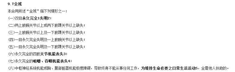 在大白定壽里的全殘是這樣定義的: