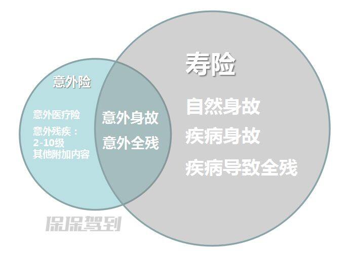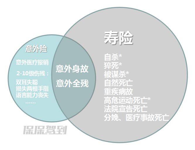 意外險和壽險的有重疊保障的部分,也有遼闊區(qū)別的部分。