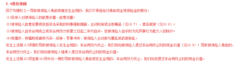 自殺:必須在合同期滿2年后才能賠付。