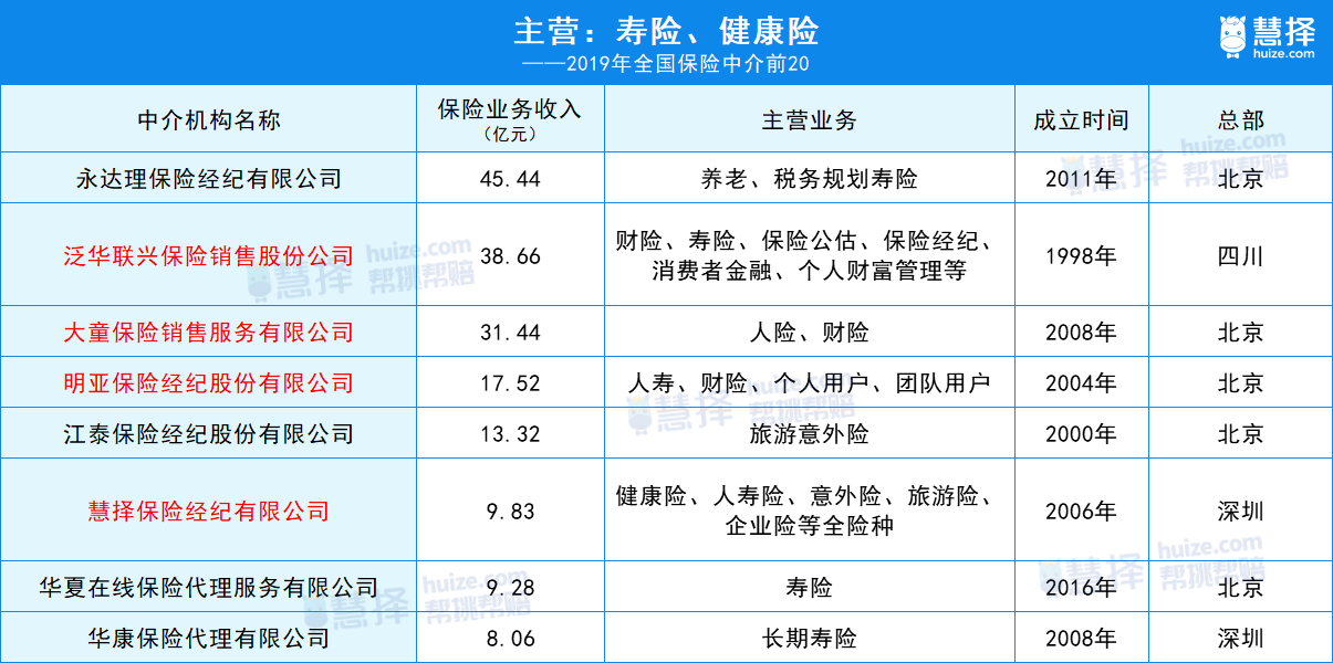 此外的8家主營壽險、健康險的保險經(jīng)紀(jì)/代理公司有: