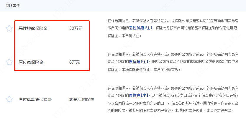 如果發(fā)生惡性腫瘤,一次性賠付30萬;
