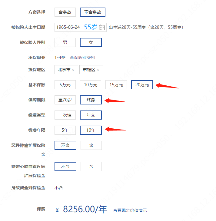 每年交8256元,8萬2的總保費(fèi),賠付20萬,大家自己掂量劃不劃算、能不能交得起。